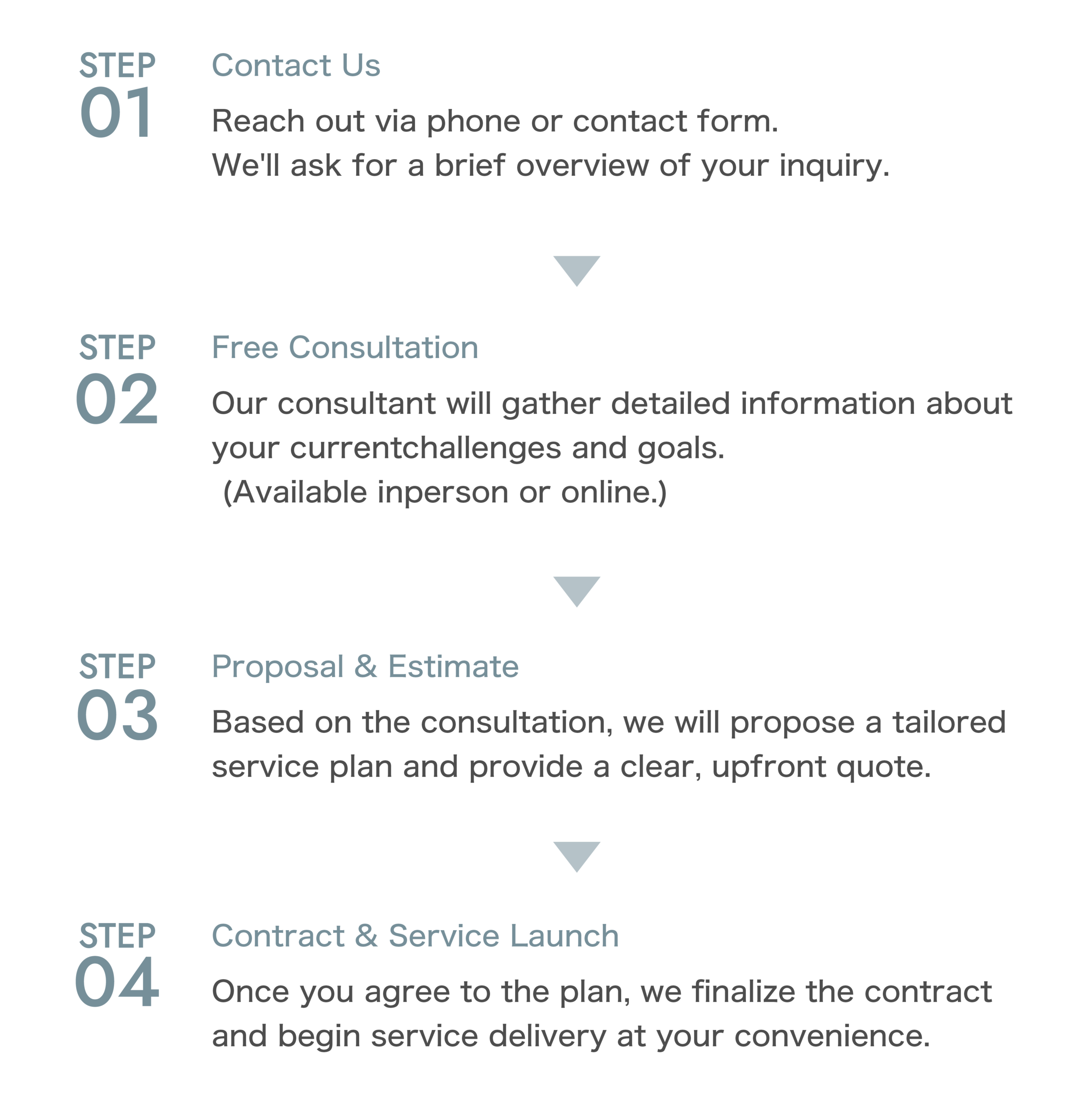 We ensure a smooth and transparent process from initial consultation to contract and service launch. Even first-time clients can feel confident with our support.